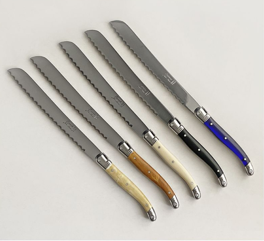 장네론 라귀올은 110년 동안 나이프를 만들어 온 회사다. 스테인리스 재질의 톱니 형태로 절삭력이 뛰어나고 손잡이 부분은 견고하고 무게감 있는 제품이다. 손잡이 컬러는 마블베이지/마블브라운/블랙/아이보리/프렌치블루로 구성되어 있다. 빵을 좋아하거나 식기구에 관심이 많은 지인에게 선물하면 좋아할 제품. 제품의 퀄리티가 좋아 웃어른이나 상사 선물로도 좋을 선물이다. 가격은 4만7700원.