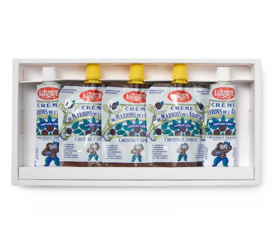 추운 겨울에 마시는 따뜻한 밤라떼는 행복이다. 크렘드마롱은 클레망포지에사의 140년 전통 프랑스산 밤잼 브랜드로 알려져 있다. 품질 좋은 야생 밤을 원료로 글루텐 프리에 합성식품 첨가물이 들어가지 않은 건강한 밤잼이다. 밤잼 자체만으로 딸기잼, 사과잼 등 흔히 볼 수 있는 여느 과일잼보다 특별하게 느껴진다. 비싼 밤 디저트를 집에서 간편하게 만들어 먹을 수 있는 밤잼을 선물해 보는 건 어떨까. 튜브타입과 튜브+파우치 타입 2종으로 구성되어 있다. 가격은 2만6224원.